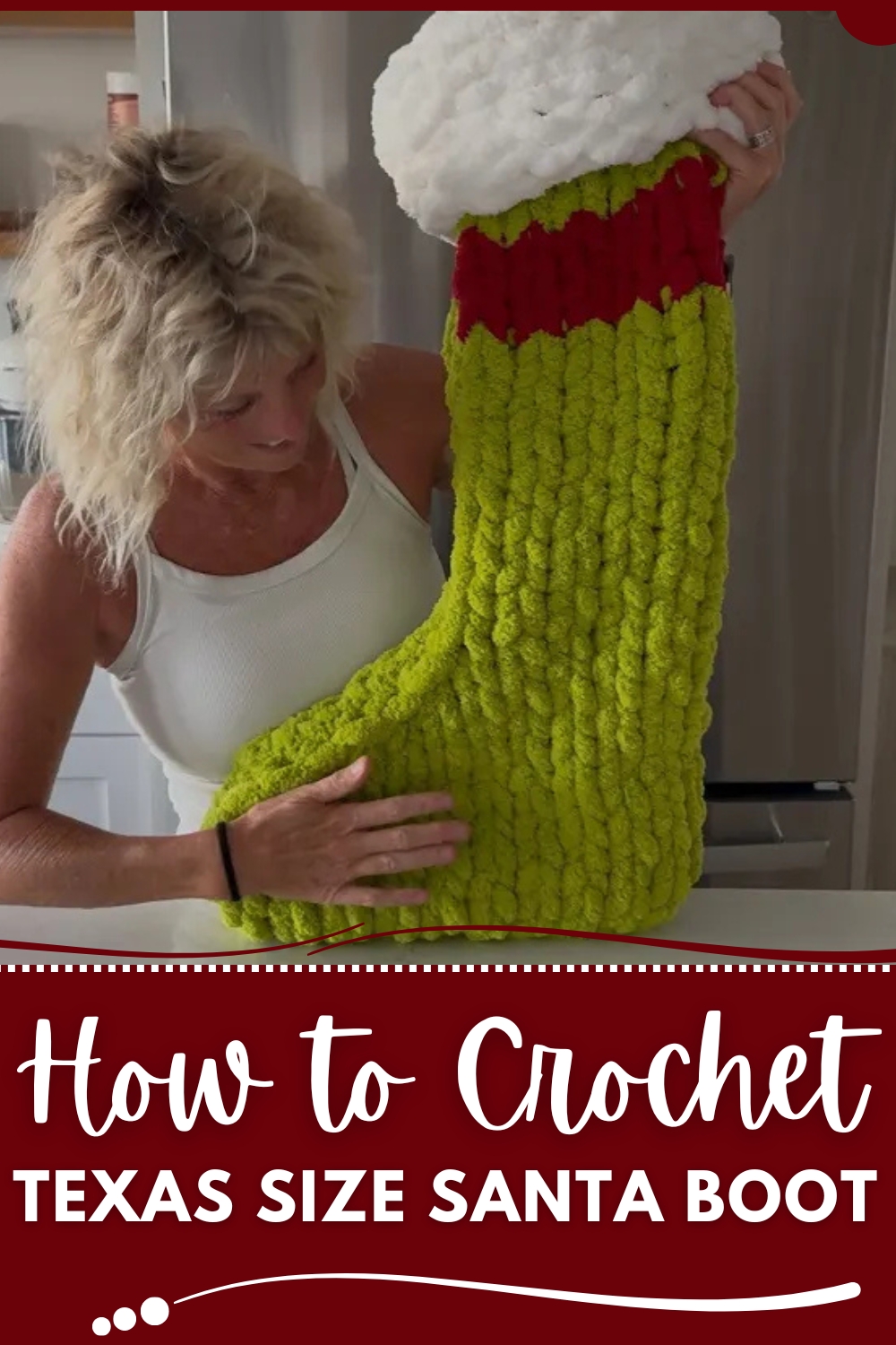 Soft Crochet Texas Size Santa Boot Offers Bold Accent